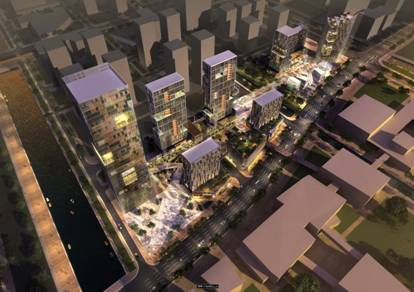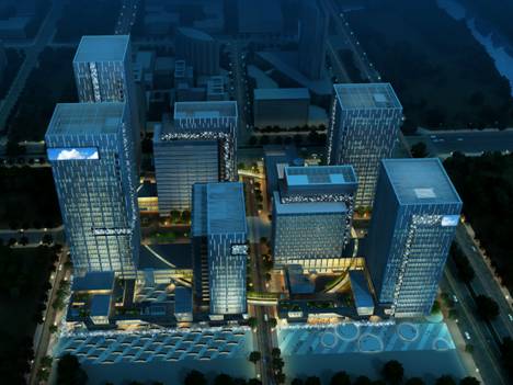 上图为宁波国际金融服务中心一期效果图,下图左为宁波国际金融服务中心二期中中国银行大厦效果图,右为十一城项目效果图。