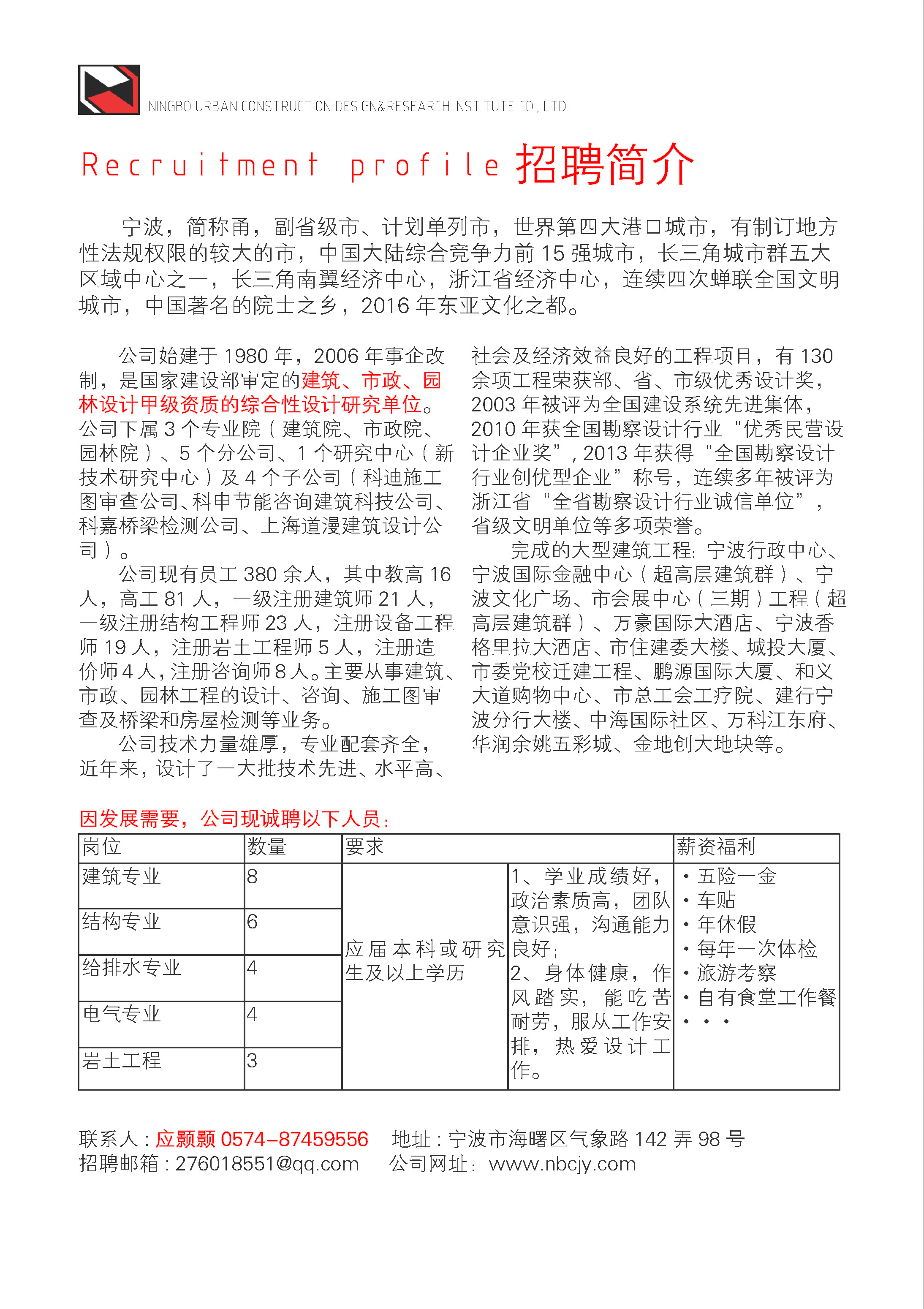 宁波市城建设计研究院有限公司校招
