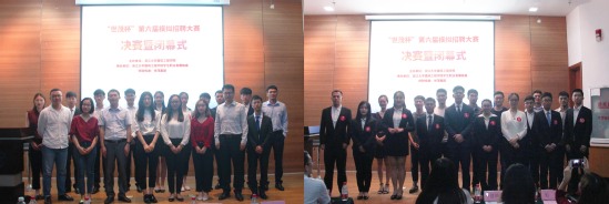 接下来是本次此活动最重要的部分---模拟招聘大赛决赛。在决赛中,十强选手被随机分为2组,每组5人。决赛分为3个环节进行,分别是:选手自我介绍、无领导小组讨论和总结陈述。每位参赛选手对于抽取的讨论话题都有自己独到的见解,讨论热烈,气氛活跃。台下观众也深受感染,沉浸在对问题的思考中。