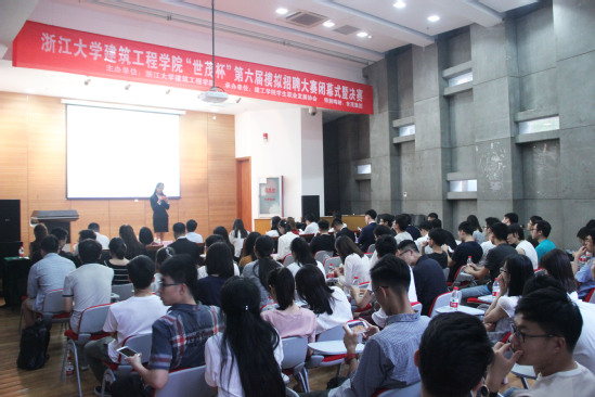 2018年6月7日晚18点30分,“世茂杯”第六届模拟招聘大赛闭幕式暨决赛在安中下沉报告厅顺利举行。出席本次闭幕式的嘉宾有:世茂集团代表黄蕾女士,龙湖地产代表戴泉鑫先生,中海地产代表朱吉先生,旭辉集团代表佘文烨先生,杭州万科地产代表张红女士,华东院代表蒋建平先生,浙大院代表金轶群先生,中建国际代表葛东梅女士以及建工学院学工办主任徐洁老师。