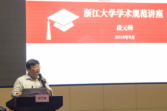 学院土木系系主任段元锋教授为大家讲述学术道德规范。段老师指出,违反学术规范的行为包括剽窃、抄袭、篡改实验数据、伪造、私自署名、泄密以及其他违背学术界公认的学术规范的行为。他还特别强调,研究生在浙大学习期间完成的研究成果的发表,完成单位应署名浙江大学,在申报或发表时必须征得导师同意。另外,段老师以贺海波事件为例,表明浙江大学不会包庇任何学术不端行为,如有发现,将会严肃处理。段老师希望各位同学一定遵守学术道德规范,早日收获科研成果。