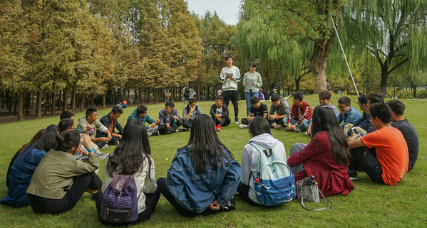 秋日的紫金港,风清气爽,层林尽染。下午一点,沐浴着和煦的阳光,同学们如期相聚在东区草坪。在众位同学的翘首期待中,破冰活动正式开始。学院团委副书记金立乔老师首先对事务中心新一届同学的到来表示热烈的欢迎。接下来同学们围坐成一个圆圈,大家按照顺序依次对自己进行了简单的自我介绍,使同学们相互之间有了一个初步的了解。接下来主持人对之前同学们已经写好的个人资料便笺进行抽签,并指定一名在座成员猜测便笺上的描述内容所对应的同学,过程中很多组都快速的猜对了答案,可见通过第一个活动,新成员们互相之间已经有了初步的了解。