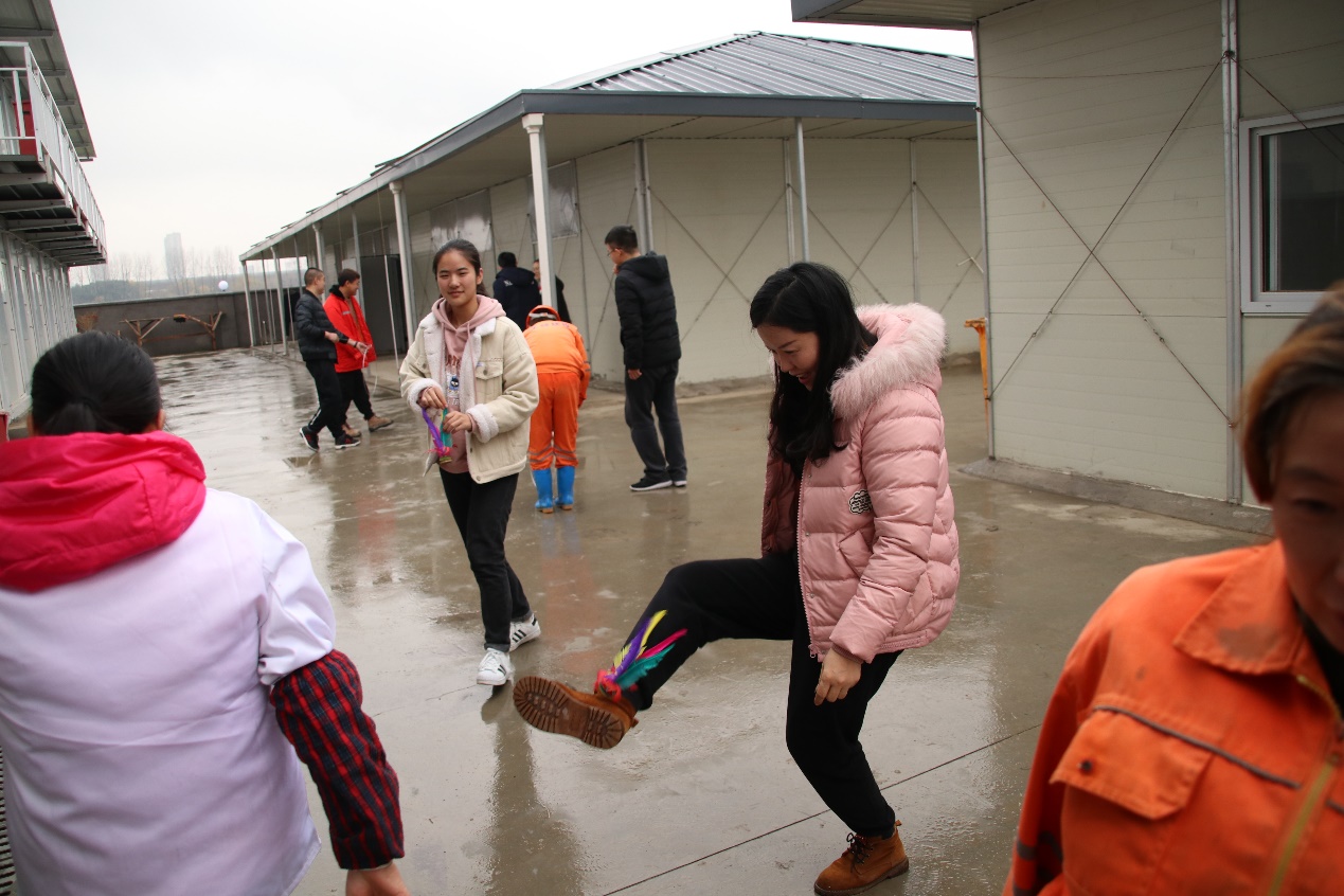 观影结束后,志愿者们带来了“滚铁环”、“踢毽子”、“抽陀螺”这三项为我们父辈所熟悉活动。民工们纷纷为这些代表了他们童年的玩具所吸引,一个个跃跃欲试,投入了紧张刺激的比赛中,更有民工带着自己的孩子参与了进来,在一次次尝试中笑逐颜开。在被这些玩具带来的童年回忆所感染的同时,民工们也纷纷感叹“现在的小孩都玩电脑,都没见过这些东西了,这样的户外活动对于小孩子的成长也是极为有利的”。