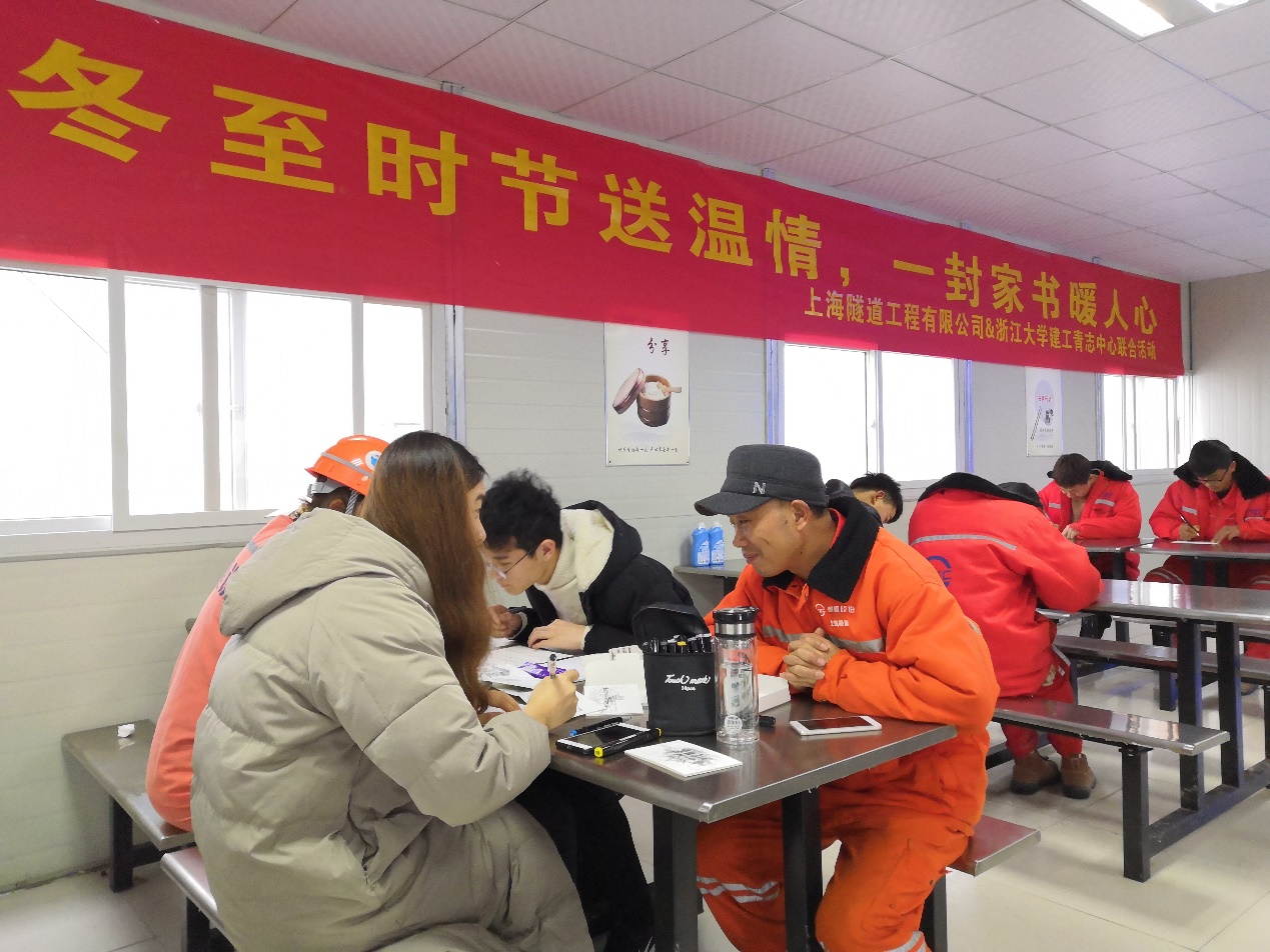 12月22日,时为冬至,建工学院青志中心联合上海隧道工程有限公司杭州地铁4号线二期工程杭钢项目部共同举行“冬至时节送温情,一封家书暖人心”送温暖活动,将建工志愿者们的温暖带给忙碌在冬日的民工们。