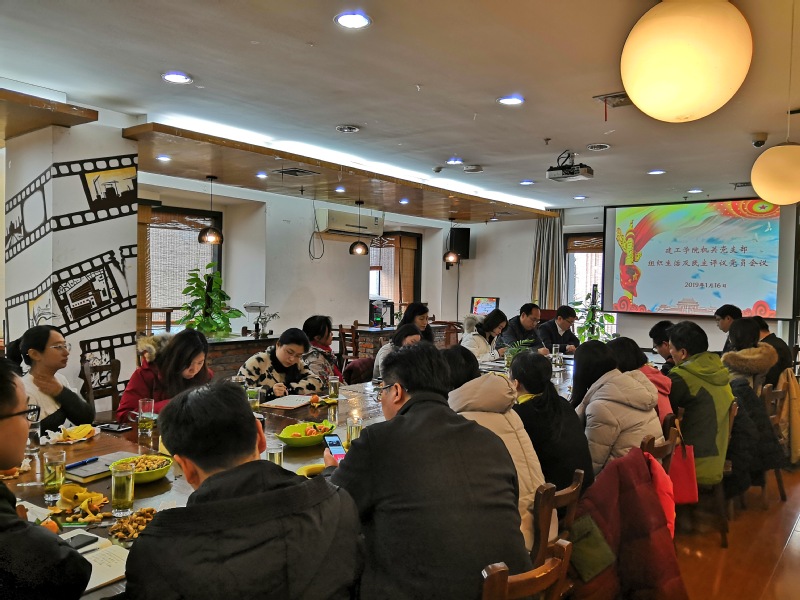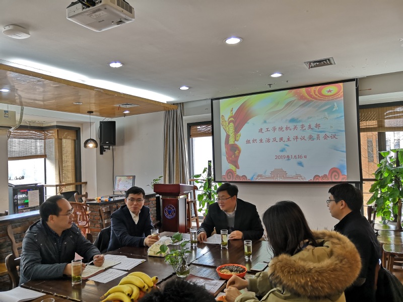 2019年1月16日中午,建工学院机关党支部在建工之家召开了建工学院机关党支部组织生活会,建工学院党委书记郭文刚,党委副书记傅慧俊、张威,学院党委委员段元锋以及机关党支部全体党员参加。会议学习贯彻了习近平总书记在庆祝改革开放四十周年大会上的重要讲话精神、认真学习了《中国共产党支部工作条例(试行)》和习近平总书记在纪念刘少奇同志诞辰120周年座谈会上的讲话精神,并开展了民主评议党员的工作。