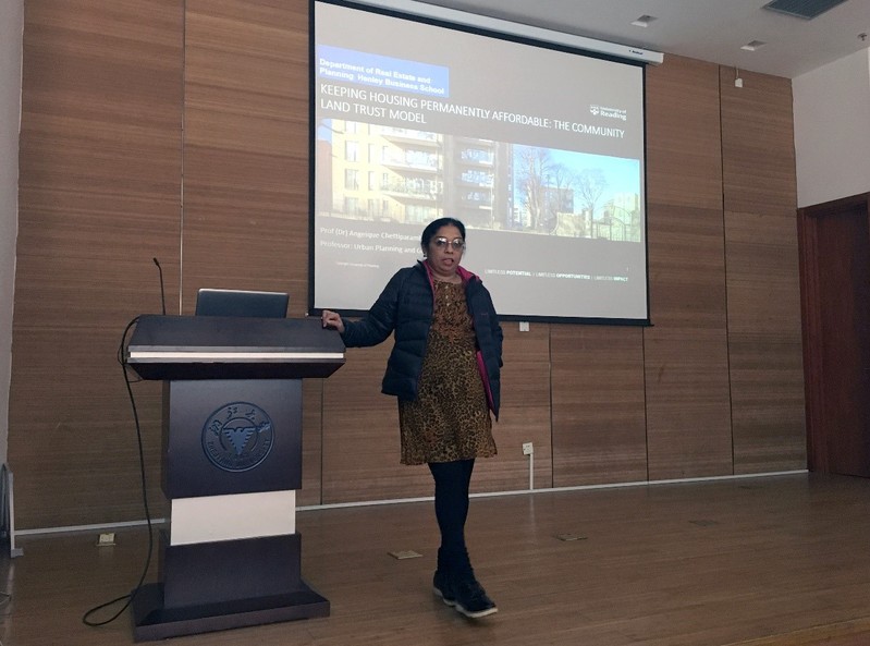 11月12日,英国雷丁大学安吉莉可·钱提帕拉姆(Angelique Chettiparamb)教授应邀于安中大楼多功能厅做了题为“让住房变得永远买得起:伦敦的住区土地信托基金”(Keeping Housing Permanently Affordable: The Community Land Trust Model in London)的报告。钱提帕拉姆是国际知名规划学者,兼任欧洲规划院校联合会秘书长、SSCI国际期刊《Planning Theory》主编等学术职务。其研究涉及规划研究及组织行为学研究。主要研究方向为基于复杂性理论的规划理论研究,包括分形及自我再制理论在规划理论中的应用。此外她也涉足土地管理工具与技术、自下而上的规划实践、多层治理等领域的研究。在地域上除印度和英国外,她的研究也涉及斯里兰卡、黎巴嫩和加纳等地区。她不仅在多份SSCI期刊上发表了大量高引论文,还获得了世界粮食计划署、福特基金会、美国国际开发署和英国高等教育学院的研究基金资助。
