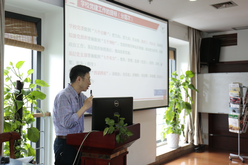 胡昱东围绕《中共浙江大学委员会关于加强和改进院(系)党组织建设的意见(试行)》和《中共浙江大学委员会关于贯彻落实〈中国共产党支部工作条例(试行)〉的指导意见》两份2020年学校最新党建文件,深入浅出地对院系党建工作政策作了解读,特别对“三会一课”和主题党日活动等要求以及即将推出的党建信息化平台进行了重点强调。