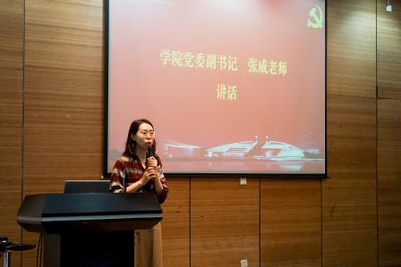 最后,张威老师作总结讲话。她首先代表学院党委向加入党组织的新成员表示热烈的祝贺;她强调,本次入党宣誓仪式是在特殊时期举办的一场有意义的党性教育活动,全体预备党员更要坚定信仰,胸怀伟大理想;不忘初心,锤炼党性修养;牢记使命,勇担时代重任。最后,张老师借用校党委书记任少波提出的“四个更加”,勉励全体预备党员以“更高质量、更加卓越、更受尊敬、更有梦想”为目标严格要求自己,从“光荣地加入中国共产党”向“成为一名合格党员”迈进,在行动上加入党,在思想上融入党,真正为国家的富强发展、民族的伟大复兴和为党的事业添砖加瓦。
