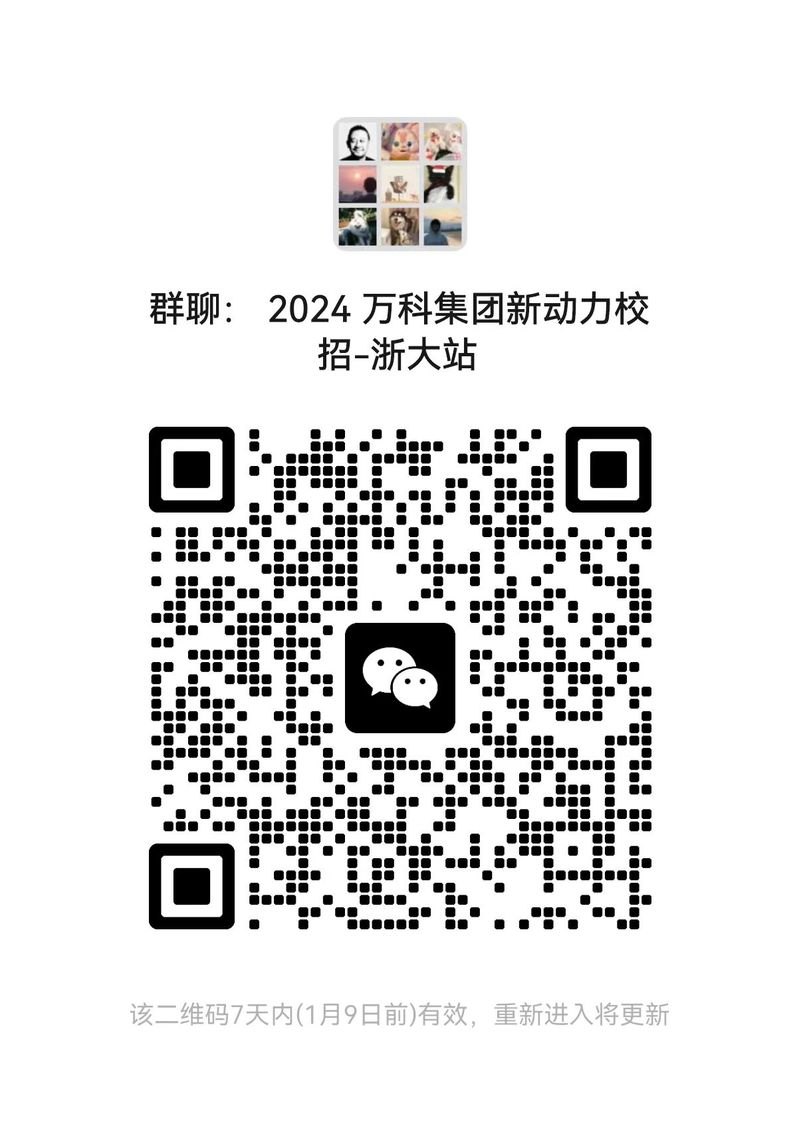 📣📣更多信息请加入万科集团2024新动力校招--浙大站专属群,请扫码进群吧!