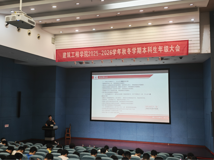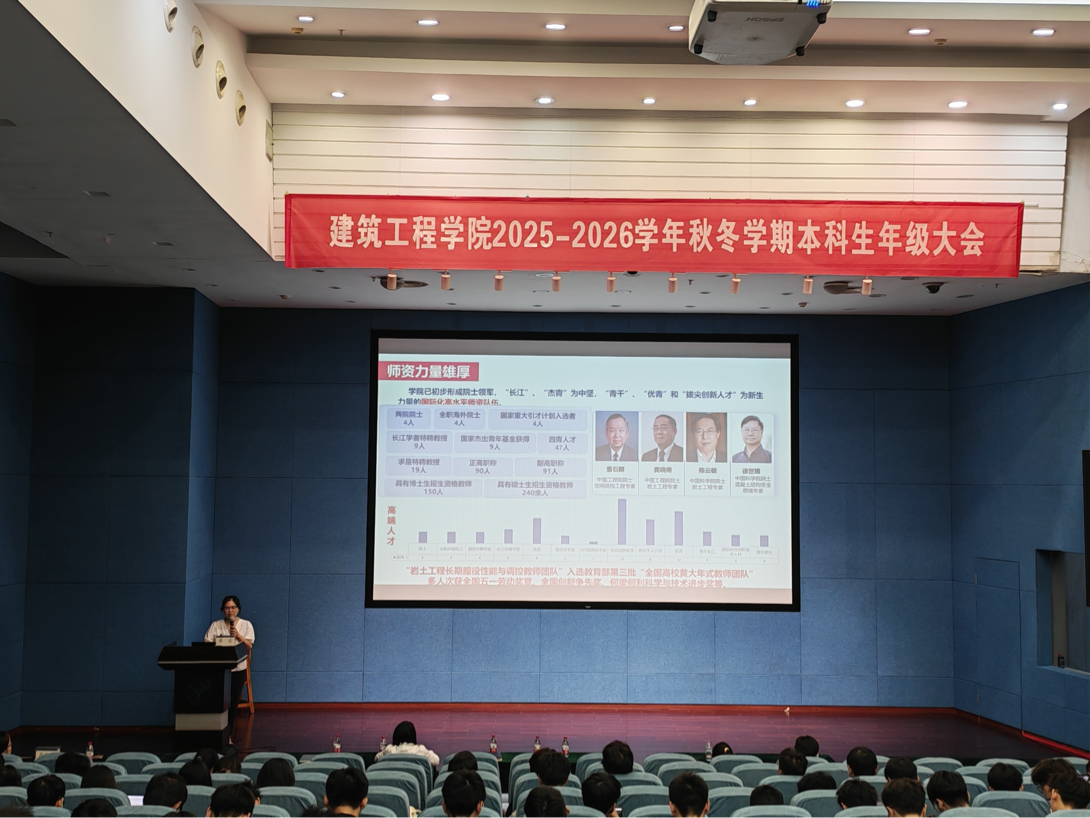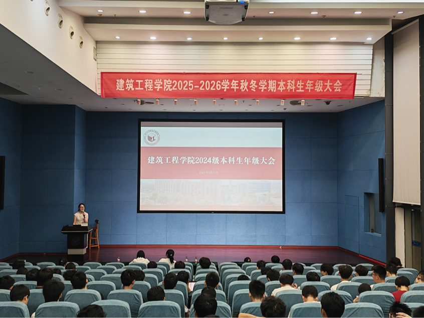 为进一步引导学生明确学习目标、规划成长方向,强化立德树人实效,2025年9月19日,建筑工程学院在安中大楼报告厅召开2025—2026学年秋冬学期2024级本科生年级大会。会议由学院辅导员高依敬主持。