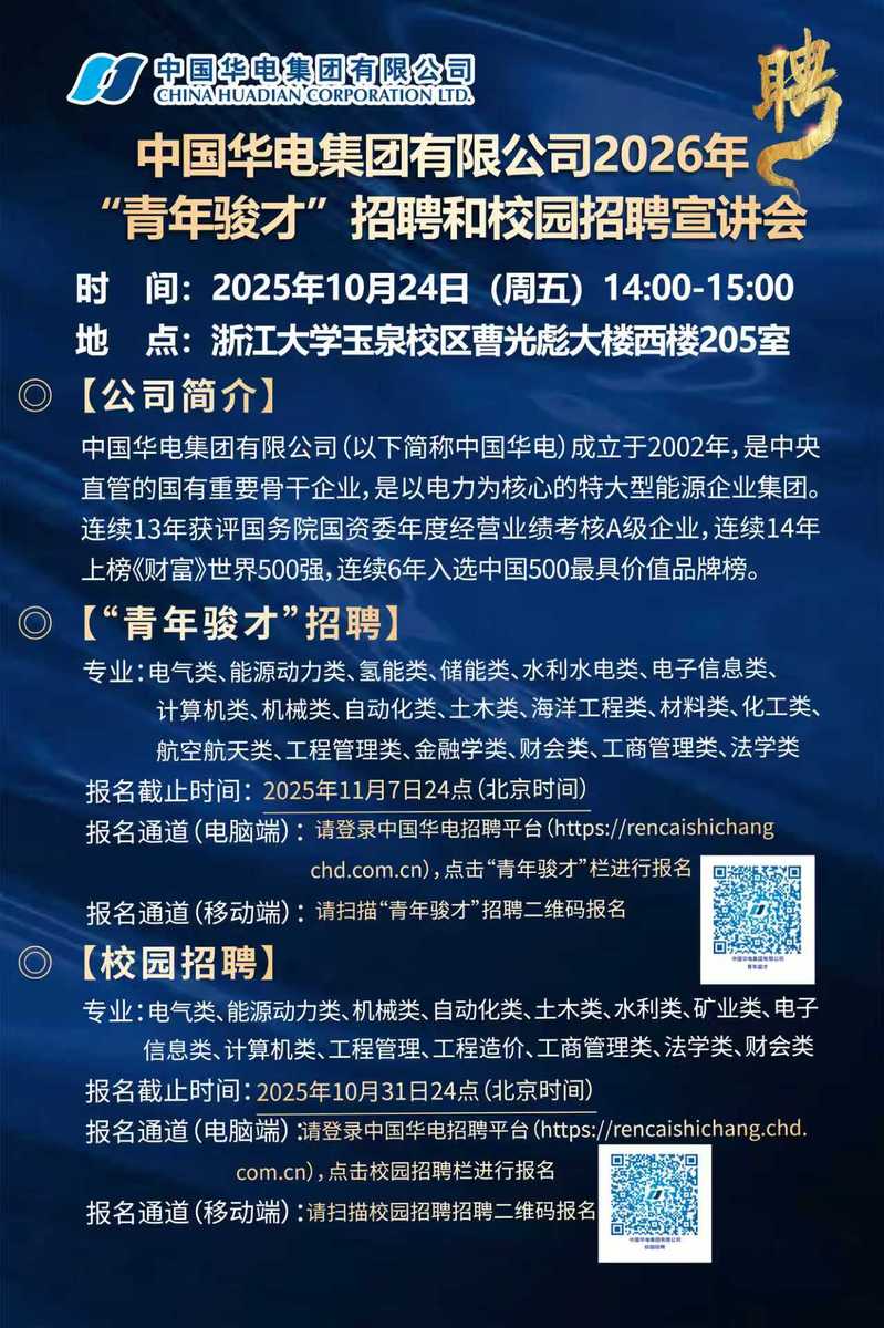 🔥 央企招聘|中国华电2026年青年骏才暨校园招聘&宣讲会来啦! 🔥